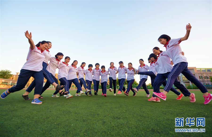 6月2日,河北省衡水市冀州中学高三学生在进行拓展训练,放松心情。