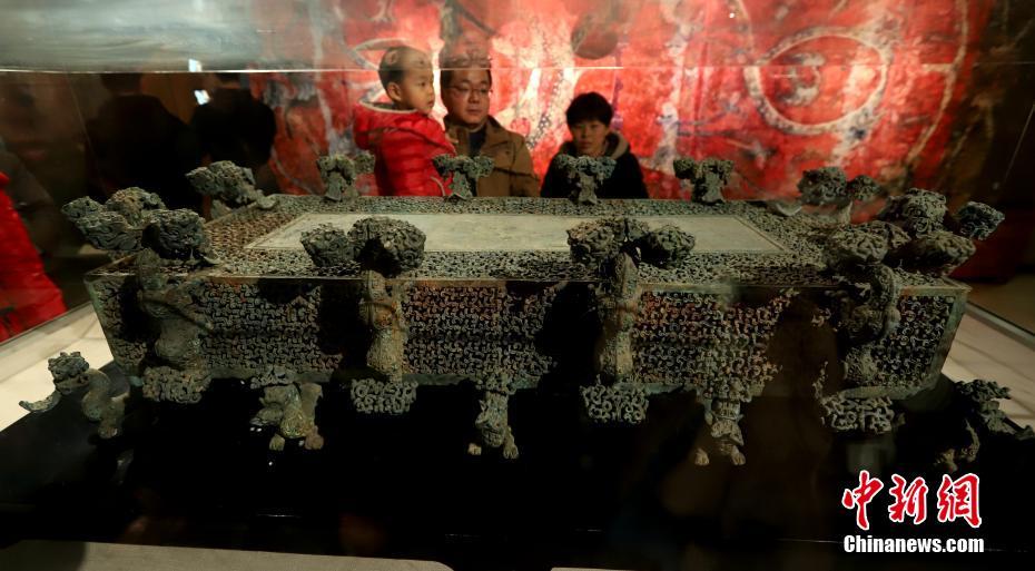 禁止出国(境)展览文物之一云纹铜禁。中新社记者王中举摄