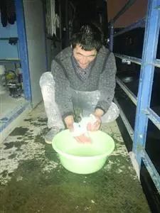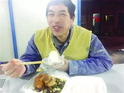 “我们一般中午都是随便吃吃,晚上再回来好好吃,两个人花10块钱买一盒菜,再花2块钱买4个馒头,一个人只要花6块钱,比食堂划算得多。”老葛说。每天晚上吃完晚饭后,老葛还要耐心地花上一段时间,在工地里的热水机前排队打热水。因为打热水的人多,水箱里的水很多时候只有六七十摄氏度了,这个水不能喝,老葛就会先接上满满一桶,用来洗头发、洗脸、洗脚、洗衣服。等到人少时,水开了,再去接一瓶滚烫的水,用来喝。