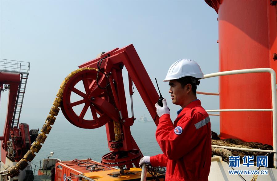 3月13日,“科学”号技术支撑团队负责人姜金光在船上工作。雄伟的红色吊臂矗立在船舯,高大的红色吊架安装在船尾,大大小小红色仪器错落有致摆放在甲板。第一次登上“科学”号,第一眼就被船上的“红色风景线”吸引。深入采访后,方知船上还有一支专业的技术支撑团队,精心守护着这些红色的仪器设备。新华社记者张建松摄
