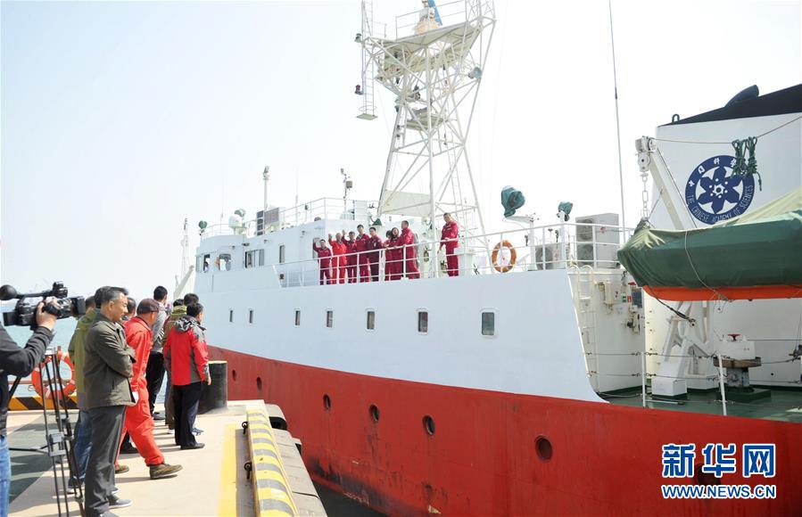 4月18日,“科学三号”调查船驶离山东青岛西海岸新区母港。当日,中国科学院海洋研究所“科学三号”调查船从山东青岛西海岸新区母港起航,参加“透明海洋”工程2018年度渤海、南黄海标准断面调查项目综合考察。新华社发(俞方平摄)