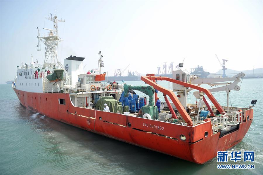 4月18日,“科学三号”调查船驶离山东青岛西海岸新区母港。当日,中国科学院海洋研究所“科学三号”调查船从山东青岛西海岸新区母港起航,参加“透明海洋”工程2018年度渤海、南黄海标准断面调查项目综合考察。新华社发(俞方平摄)