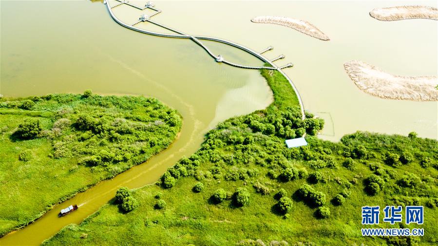 这是6月23日航拍的东营市黄河三角洲国家级自然保护区湿地景观。新华社记者吴刚摄