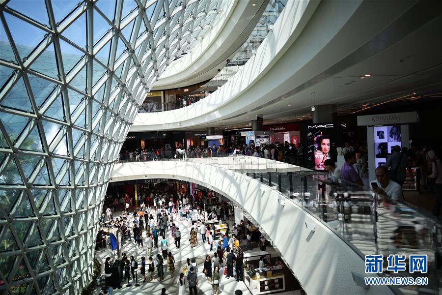 2018年2月18日,顾客在海南三亚海棠湾免税店内游览、购物。新华社记者郭程摄