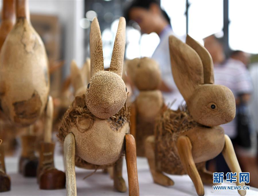 在广西南宁举办的第十五届中国-东盟博览会上,萌态可掬的各类手工艺品备受青睐。新华社记者周华摄
