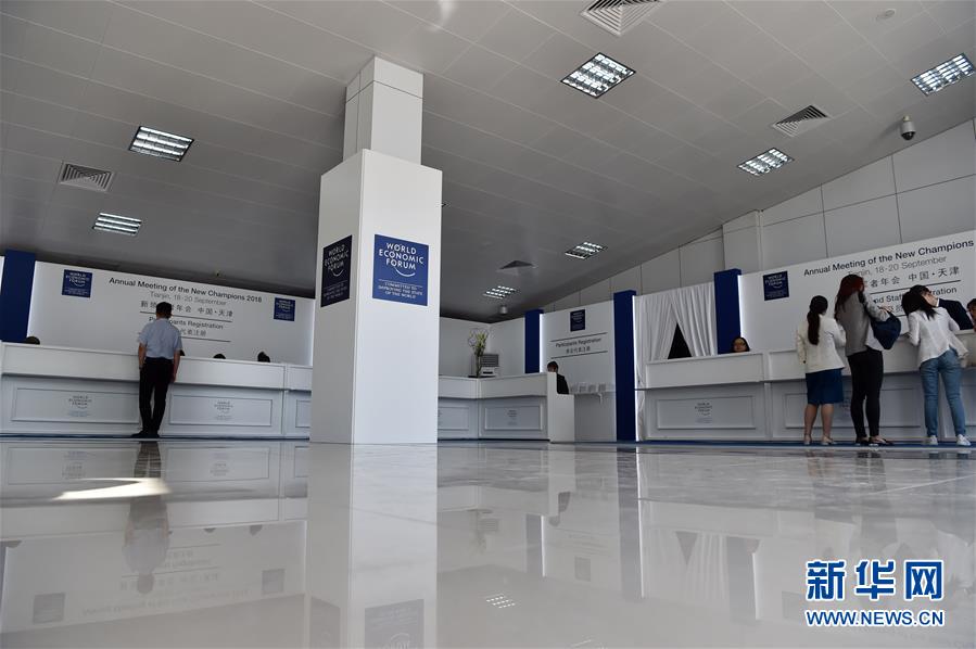 9月17日,在天津梅江会展中心,参会人员在注册处办理证件事项。第十二届夏季达沃斯论坛(世界经济论坛新领军者年会)即将于9月18日在天津举行。目前,论坛各项筹备工作已经就绪。据介绍,本届论坛共有来自100多个国家的2000多名嘉宾注册参会,设置各项会议约200场,成为迄今为止规模最大的一届夏季达沃斯论坛。新华社记者李然摄