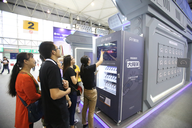 2018年网络安全博览会还突出了参与性、互动性和体验性。展馆区域配置了智能语音导览,扫二维码就能自动播放展位情况介绍。会场中设置了网络安全闯关活动,市民可以通过网上答题、现场答题闯关,领取奖品。图为2018年网络安全博览会上公众体验“网络安全大闯关”。中国网信网李旭摄