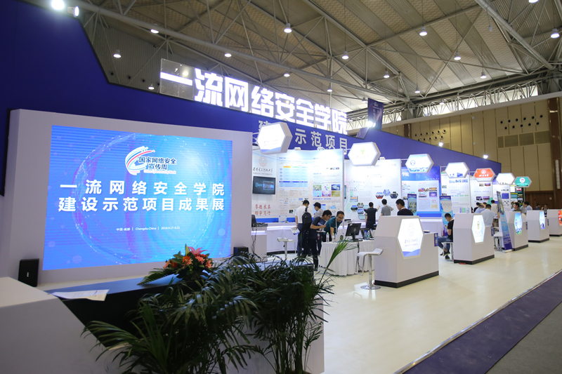 图为2018年网络安全博览会一流网络安全学院建设示范项目成果展区。中国网信网李旭摄