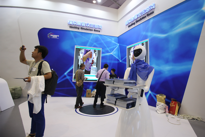 图为2018年网络安全博览会上参展企业演示日常生活中易发生的网络安全问题。中国网信网李旭摄