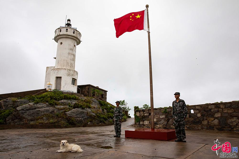 王继才的妻子王仕花说:“我们在岛上的每一天都是从升旗仪式开始的,每天都这样。天刚蒙蒙亮,我和王继才就扛着国旗走向小岛后山。在不大的小操场上,王继才负责展开国旗,用沙哑的喉咙,喊声响亮的“敬礼”。我仰望着五星红旗敬礼,尽管我的手举得不到位,或者敬礼不规范,但是,一腔热血在我的心中沸腾着。只有看着国旗在海风中飘扬,我才觉得这个小岛是有颜色的。“王继才去世了,民兵陈宽华、胡品刚等人继承了他的遗志,继续守卫在祖国的东门,确保开山岛上每天升起五星红旗。中国网记者董宁摄影