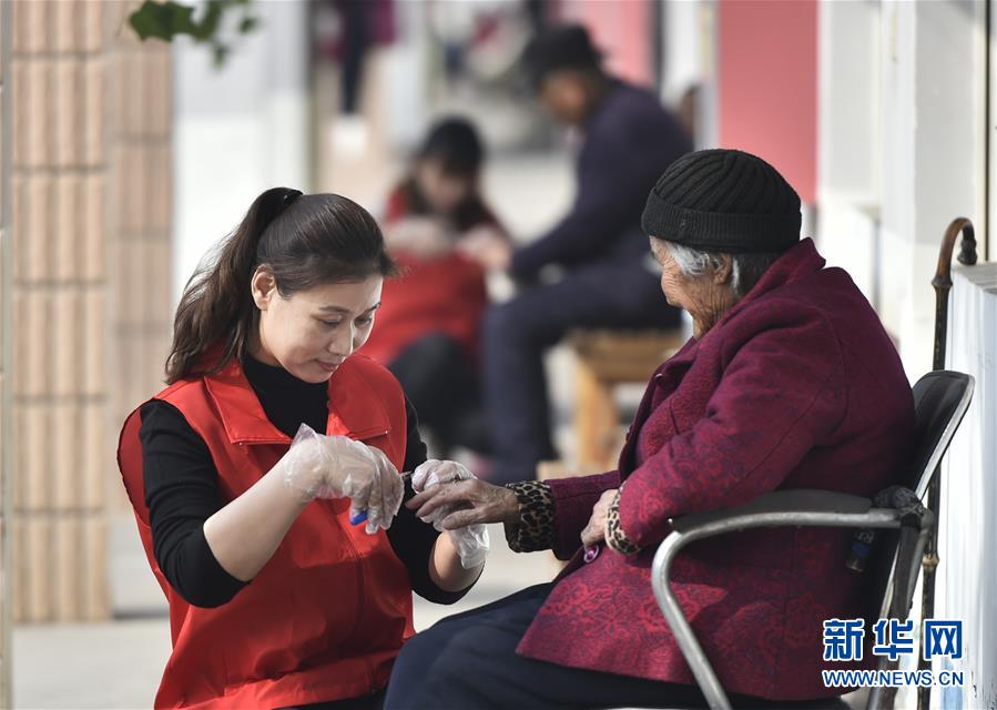 3月4日,在山东省邹平市明集镇一家敬老院,志愿者为老人修甲。