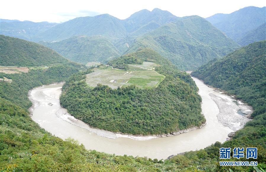 西藏墨脱县雅鲁藏布江果果塘大拐弯(2018年5月6日摄)。当前西藏高原各类生态系统结构整体稳定,气、声、水、土壤、辐射及生态环境质量均保持在良好状态,大部分区域仍处于原生状态,西藏仍然是世界上生态环境最好的地区之一。新华社记者晋美多吉摄