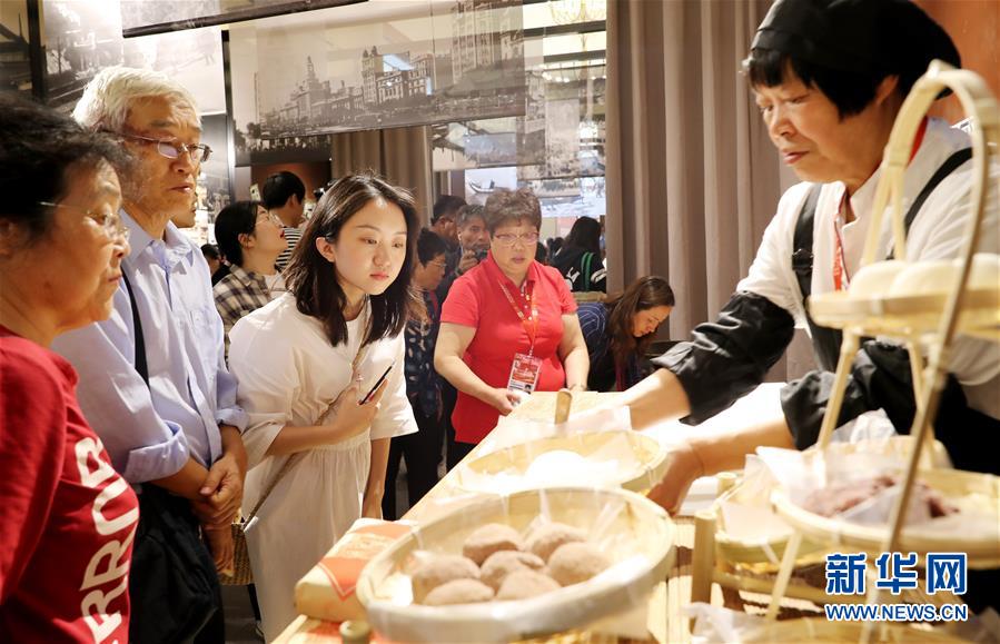 5月10日,在上海举行的2019年中国品牌日活动上,观众观看糕点制作。新华社记者方喆摄