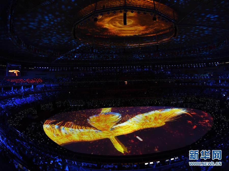 10月27日,第七届世界军人运动会闭幕式在武汉举行。这是闭幕式上的文艺表演(10月27日摄)。新华社记者程敏摄