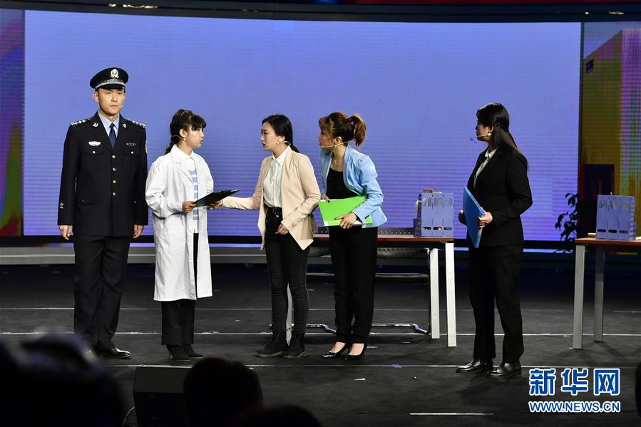 11月28日,演员在维权情景剧中演出,再现案件处置过程。新华社发(樊文军摄)