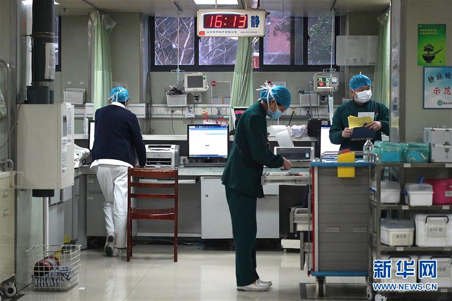 1月25日,南昌大学第一附属医院急诊科的护士们在急诊抢救室里工作。