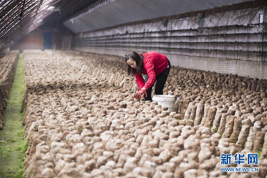 3月26日,种植户在黑龙江省红旗农场设施农业园区采摘香菇。新华社发(张涛摄)