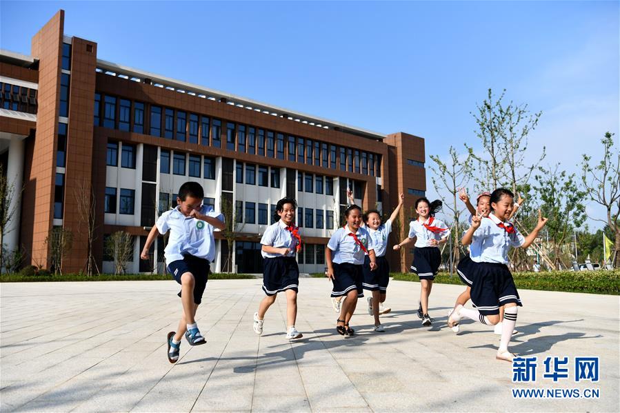 8月31日,肥西县花岗学区中心学校新校区学生在校园里活动。当日,新落成的安徽省肥西县花岗学区中心学校新校区迎来了新学期的同学们。肥西县花岗学区中心学校新校区规划设计48个教学班,新增1000多个学位,不仅改善了昔日教室拥挤现象,还提升了校园环境。新华社记者刘军喜摄