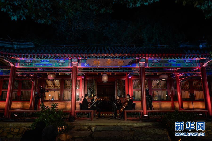 9月29日,中方艺术家演奏《茉莉花》。在中秋佳节到来之际,“千里共婵娟”中秋雅集中法线上互动活动在北京大觉寺举行。法方同步在巴黎巴比松庄园举办活动,中法两国友人通过视频连线表演节目、互送祝福。新华社记者彭子洋摄