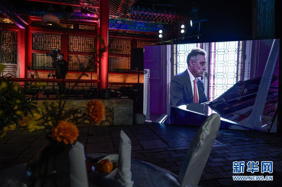 9月29日,法方艺术家弹奏钢琴曲《月光下的露台》。在中秋佳节到来之际,“千里共婵娟”中秋雅集中法线上互动活动在北京大觉寺举行。法方同步在巴黎巴比松庄园举办活动,中法两国友人通过视频连线表演节目、互送祝福。新华社记者彭子洋摄