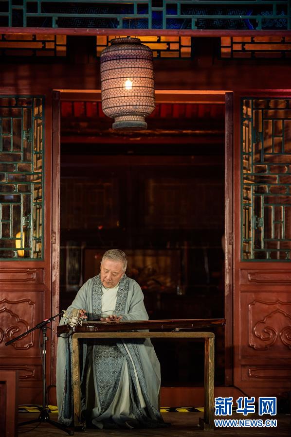 9月29日,中方艺术家演奏古琴。在中秋佳节到来之际,“千里共婵娟”中秋雅集中法线上互动活动在北京大觉寺举行。法方同步在巴黎巴比松庄园举办活动,中法两国友人通过视频连线表演节目、互送祝福。新华社记者彭子洋摄