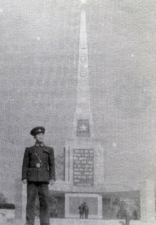 1960年抗美援朝10周年时,梅门造随贺龙元帅率领的中国政府代表团访问朝鲜。这是在平壤中朝友谊塔留影
