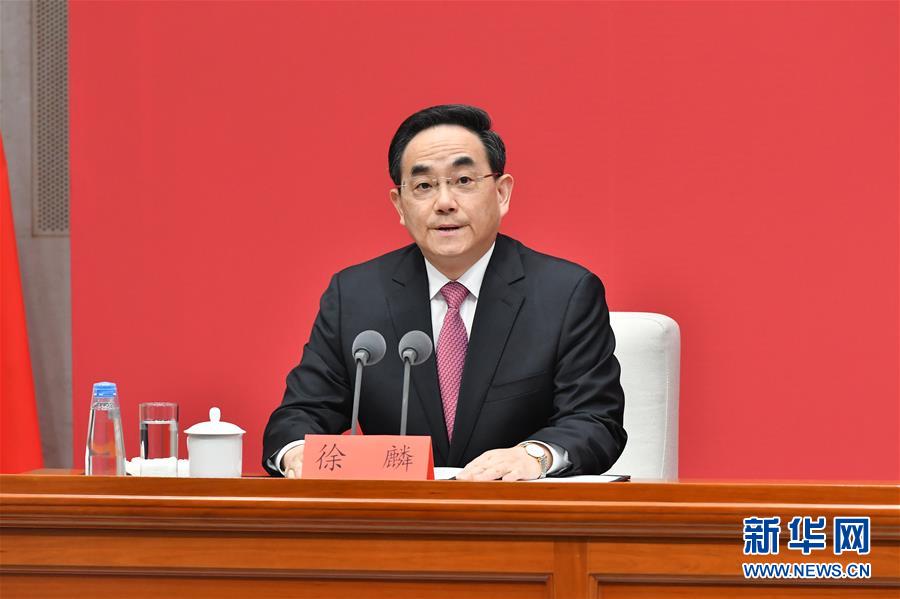 10月30日,中共中央在北京举行新闻发布会,介绍党的十九届五中全会精神,并答记者问。这是中央宣传部副部长、国务院新闻办公室主任徐麟主持发布会。新华社记者李鑫摄