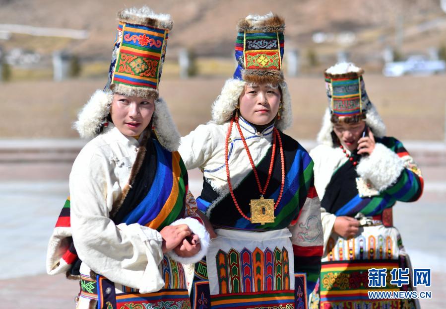 2月12日在藏北当雄县拍摄的三名盛装牧女。