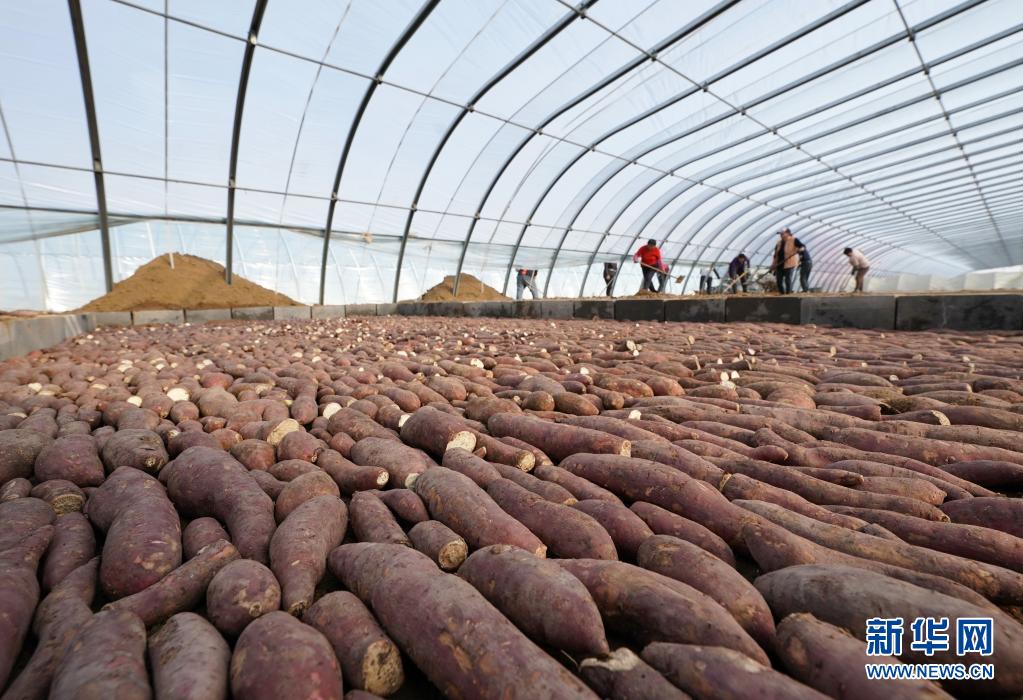 3月25日,河北省卢龙县木井镇一家红薯种植专业合作社社员在红薯育苗棚内工作。