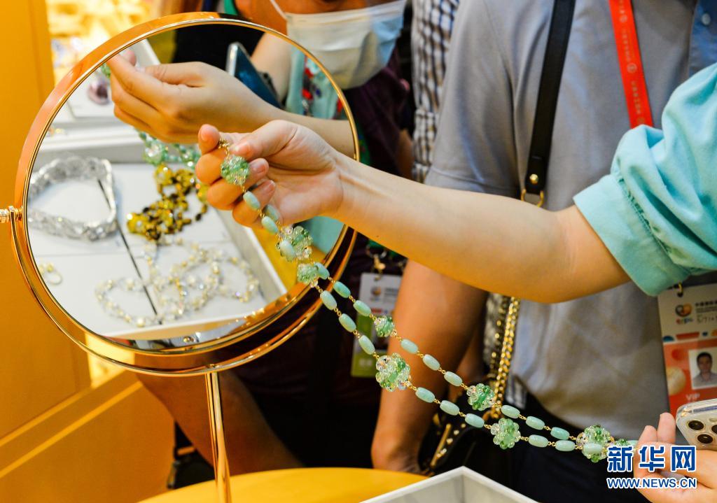 首届中国国际消费品博览会在海南省海口市举行,珠宝、时尚生活等展区的展品,吸引众多观众现场咨询、采购。