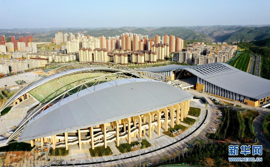 5月8日拍摄的延安新区全民健身运动中心(无人机照片)。新华社记者刘潇摄