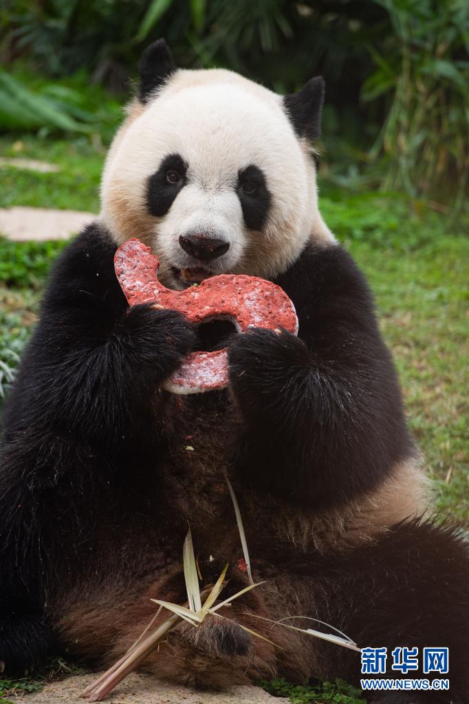当日,中央政府赠送澳门特区的大熊猫“开开”“心心”的双胞胎儿子“健健”“康康”迎来5周岁生日。澳门特区政府市政署工作人员为这对大熊猫双胞胎准备了特制的生日蛋糕。