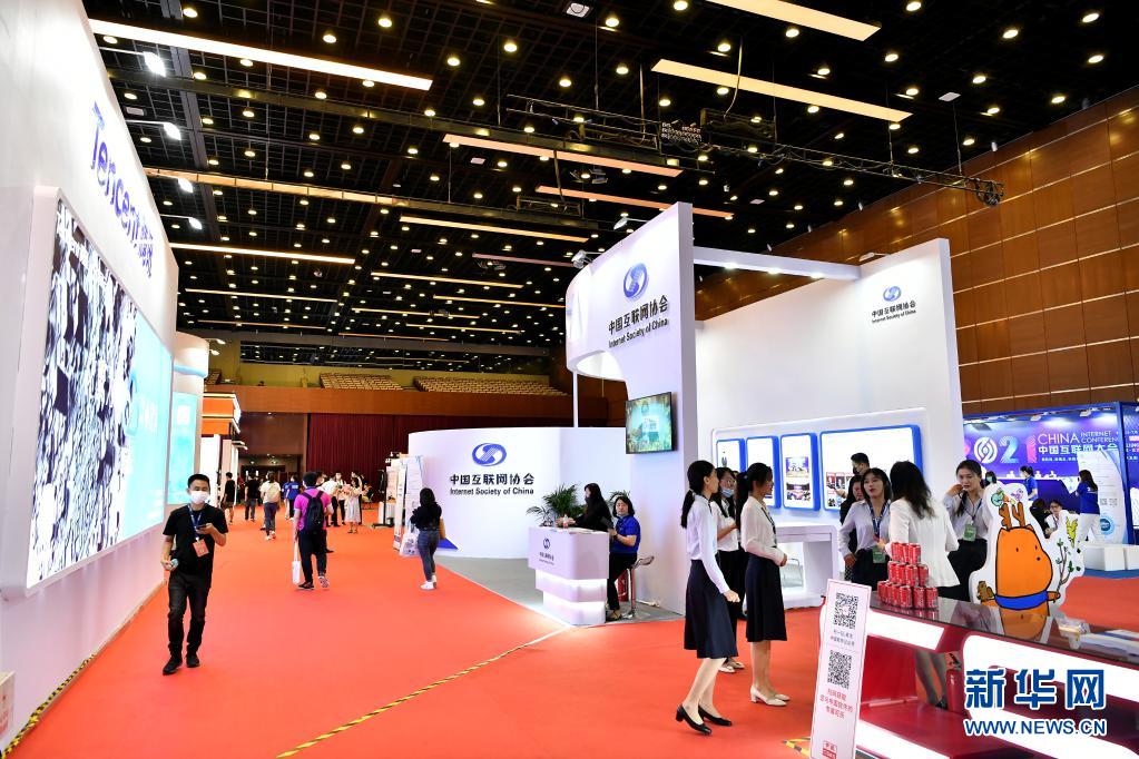 7月13日,与会者在2021中国互联网大会设置的特色展览上参观。