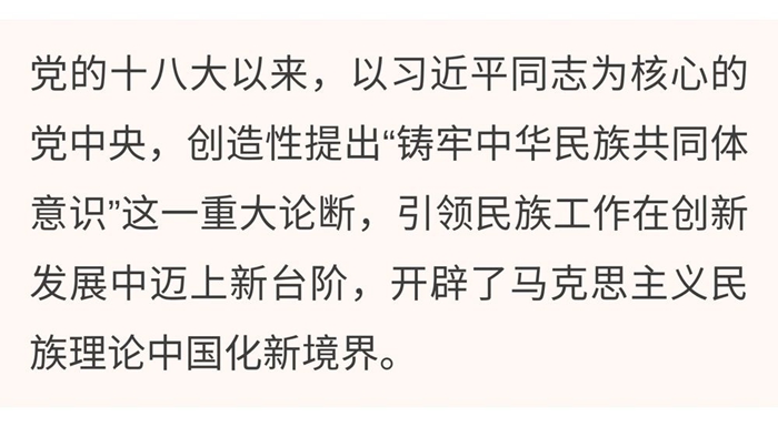 2014年5月28日,习近平在第二次中央新疆工作座谈会上发表重要讲话。在这次会议上,习近平鲜明提出“中华民族共同体意识”重大论断。同年9月召开的中央民族工作会议上,习近平明确强调“坚持打牢中华民族共同体的思想基础”。