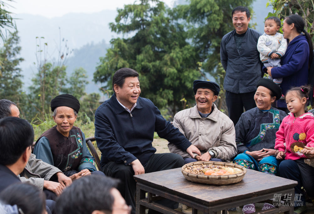 2013年11月3日至5日,习近平在湖南考察。这是3日下午,习近平在湘西土家族苗族自治州花垣县排碧乡十八洞村同村干部和村民座谈。