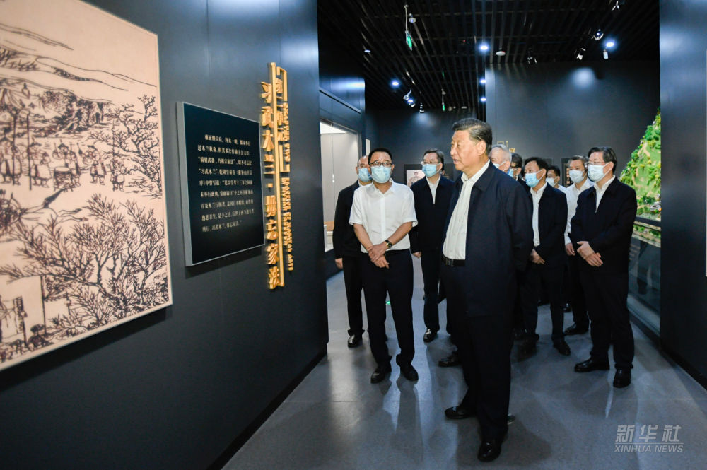 2021年8月23日至24日,习近平在河北省承德市考察。这是24日上午,习近平在承德博物馆参观《望长城内外——清盛世民族团结实录》展览。