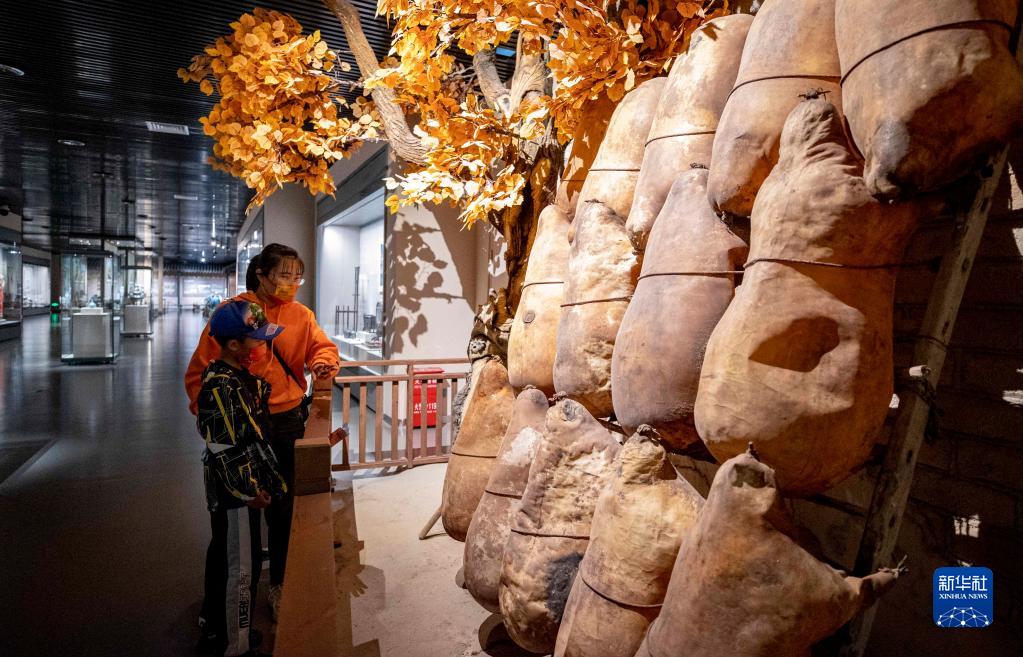 5月3日,家长带着孩子在宁夏博物馆参观“天下黄河富宁夏”宁夏民俗陈列展。