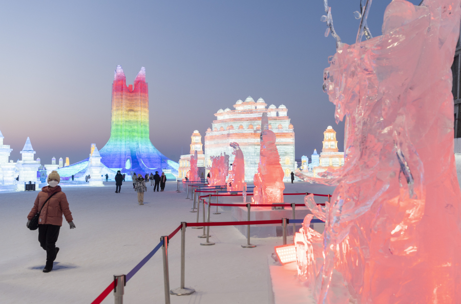 哈尔滨冰雪大世界:魅力冰雕引客来新华社记者谢剑飞摄