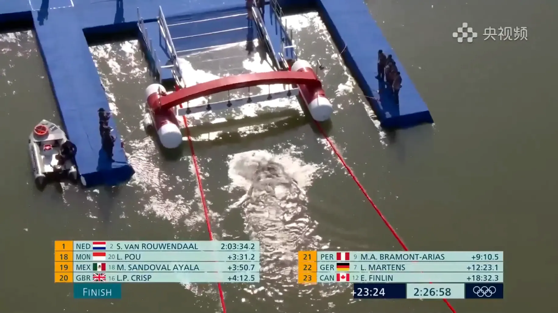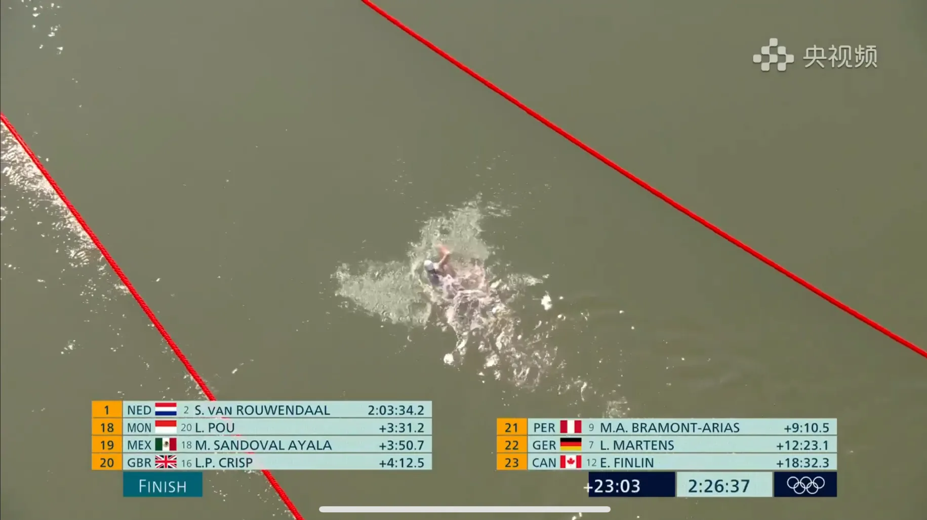 比赛时间一分一秒地流逝,此时,离冠军选手抵达终点已过去20多分钟,就在5分钟前,第23名加拿大选手也冲过终点,而辛鑫还在拼命地游,尽管此时她早已注定是最后一名。