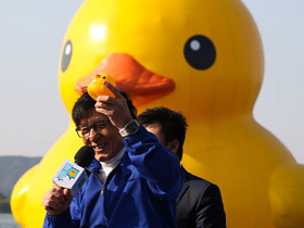 “大黄鸭”中国之旅进入倒计时 成龙为其送行